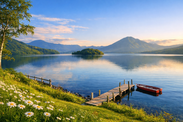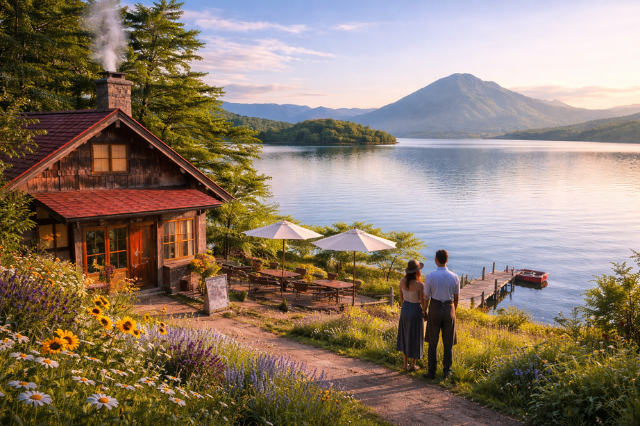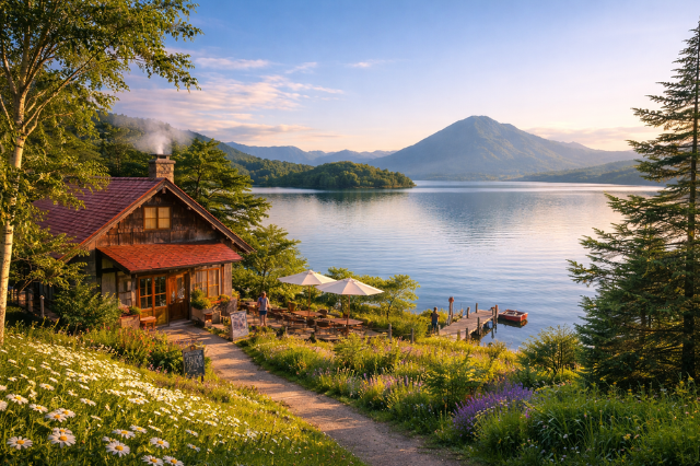北海道の湖を見渡す、小さなカフェ「マーニ」。
